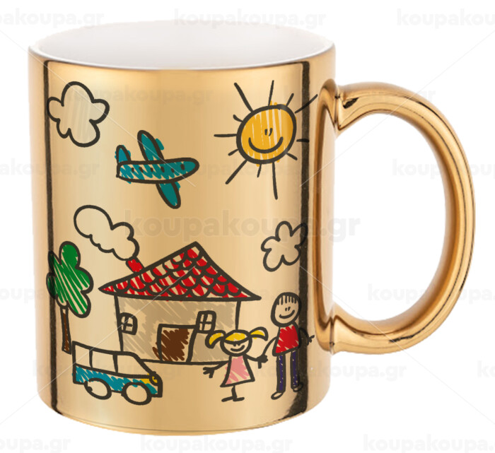 Παιδική ζωγραφιά, Κούπα κεραμική, χρυσή καθρέπτης, 330ml