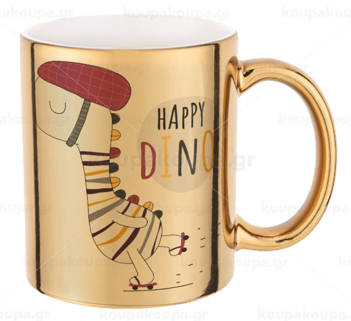 Happy Dino, Κούπα κεραμική, χρυσή καθρέπτης, 330ml