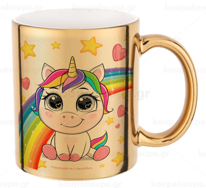 Unicorn baby με όνομα, Κούπα κεραμική, χρυσή καθρέπτης, 330ml