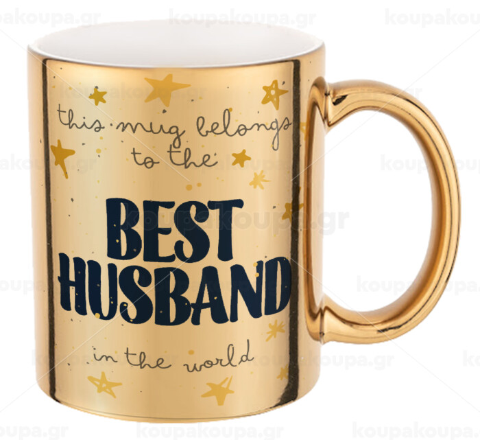 This mug belongs to the BEST HUSBAND in the world!, Κούπα κεραμική, χρυσή καθρέπτης, 330ml