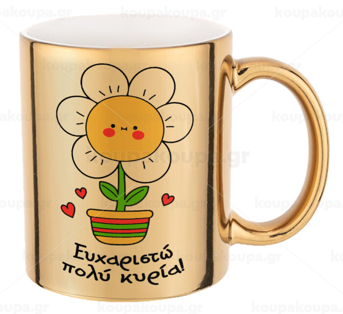 Ευχαριστώ πολύ κυρία!!!, Κούπα κεραμική, χρυσή καθρέπτης, 330ml