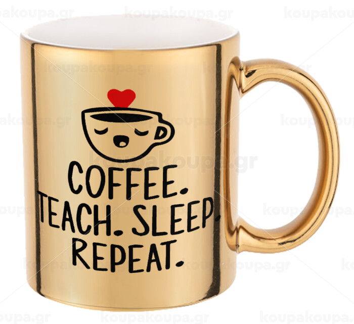 Coffee Teach Sleep Repeat, Κούπα κεραμική, χρυσή καθρέπτης, 330ml