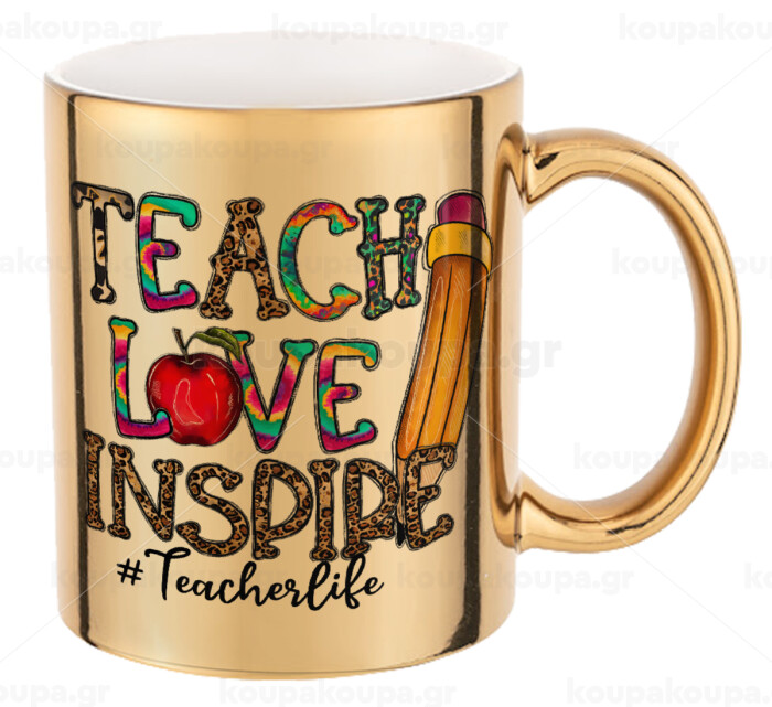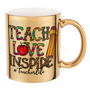 Teach, Love, Inspire, Κούπα κεραμική, χρυσή καθρέπτης, 330ml