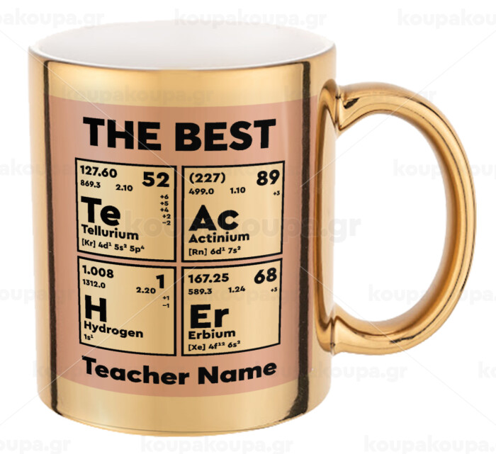 THE BEST Teacher chemical symbols, Κούπα κεραμική, χρυσή καθρέπτης, 330ml