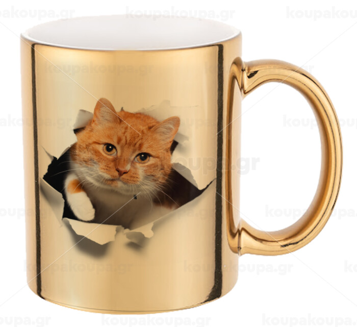 Cat cracked, Κούπα κεραμική, χρυσή καθρέπτης, 330ml