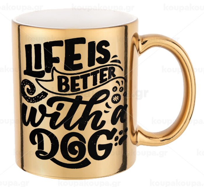 Life is better with a DOG, Κούπα κεραμική, χρυσή καθρέπτης, 330ml