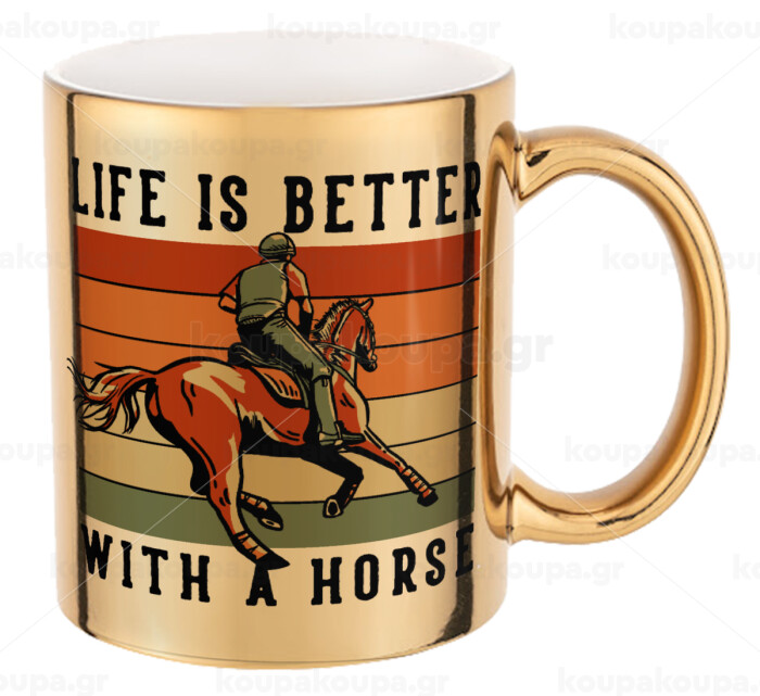 Life is Better with a Horse, Κούπα κεραμική, χρυσή καθρέπτης, 330ml