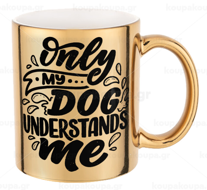 Only my DOG, understands me, Κούπα κεραμική, χρυσή καθρέπτης, 330ml