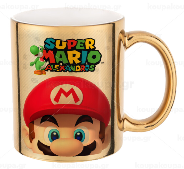 Super mario head, Κούπα κεραμική, χρυσή καθρέπτης, 330ml