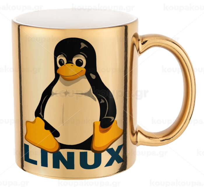Linux, Κούπα κεραμική, χρυσή καθρέπτης, 330ml