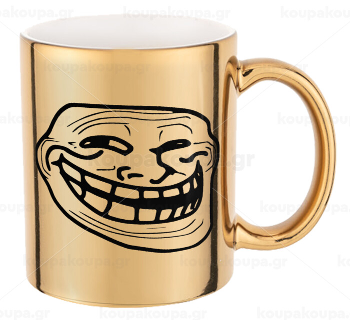 Troll face, Κούπα κεραμική, χρυσή καθρέπτης, 330ml