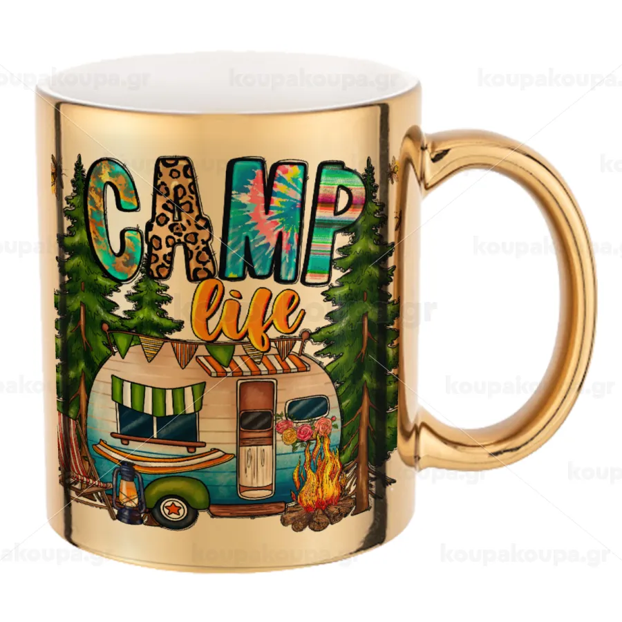 Camp Life, Κούπα κεραμική, χρυσή καθρέπτης, 330ml