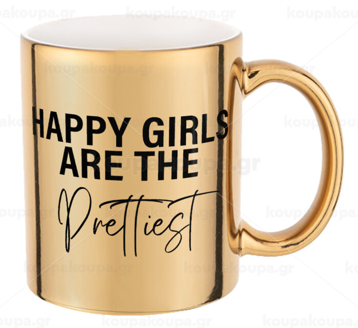 Happy girls are the prettiest, Κούπα κεραμική, χρυσή καθρέπτης, 330ml