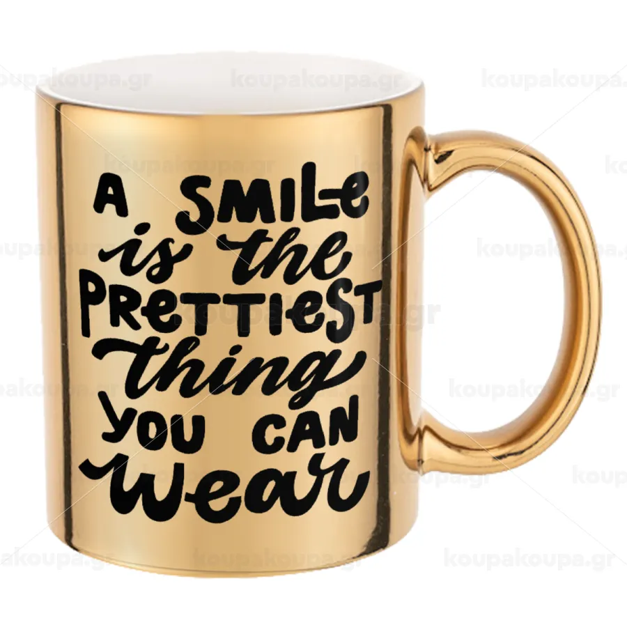 A smile is the prettiest thing you can wear, Κούπα κεραμική, χρυσή καθρέπτης, 330ml