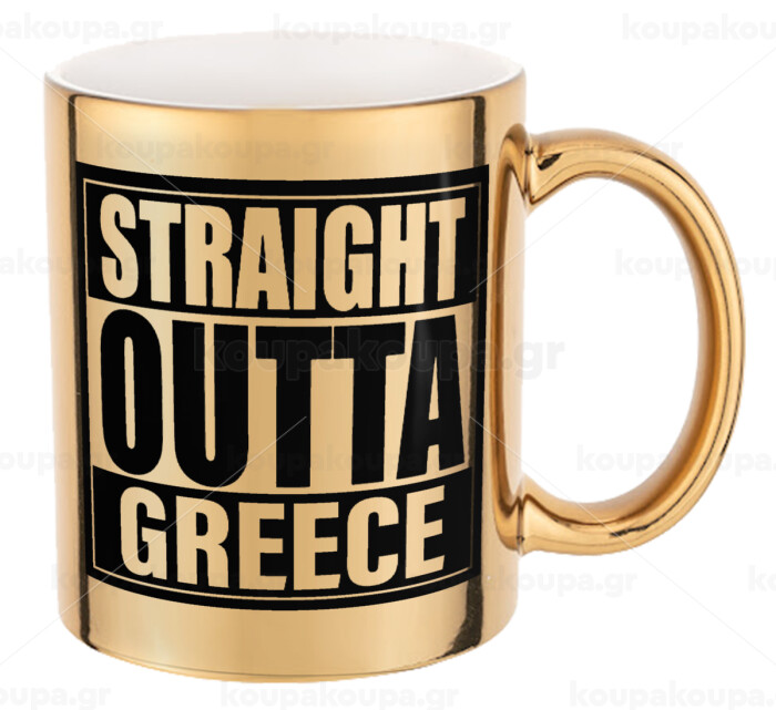 Straight Outta greece, Κούπα κεραμική, χρυσή καθρέπτης, 330ml