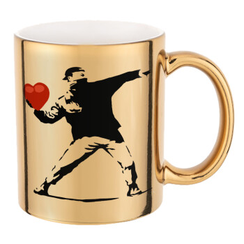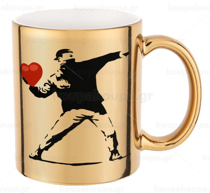 Banksy (The heart thrower), Κούπα κεραμική, χρυσή καθρέπτης, 330ml