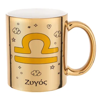 Ζώδια Ζυγός, Κούπα κεραμική, χρυσή καθρέπτης, 330ml
