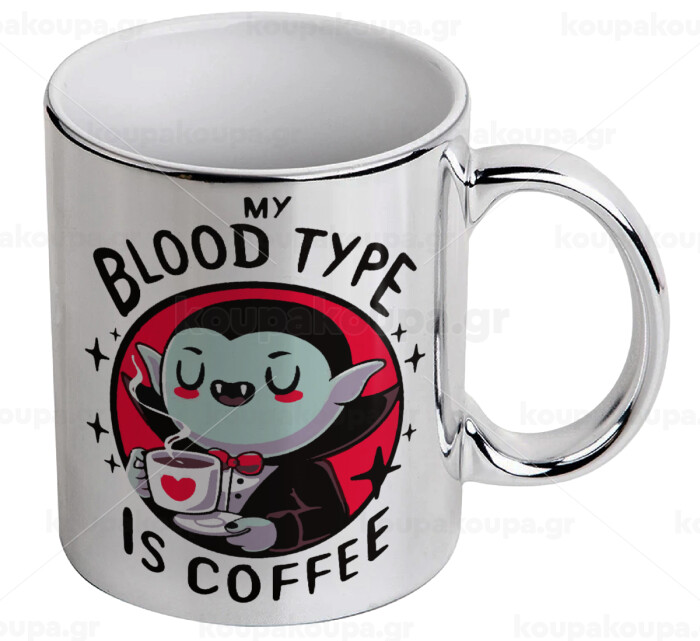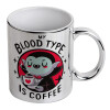 My blood type is coffee, Κούπα κεραμική, ασημένια καθρέπτης, 330ml