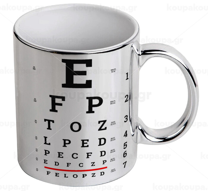 EYE test chart, Κούπα κεραμική, ασημένια καθρέπτης, 330ml