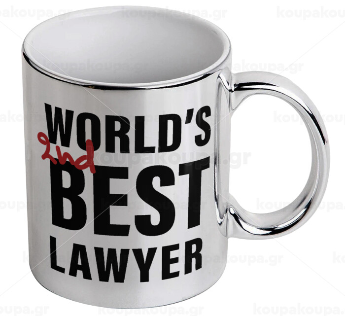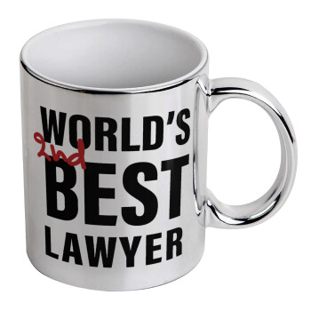 2nd, World Best Lawyer , Κούπα κεραμική, ασημένια καθρέπτης, 330ml