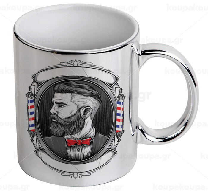 Barber shop, Κούπα κεραμική, ασημένια καθρέπτης, 330ml