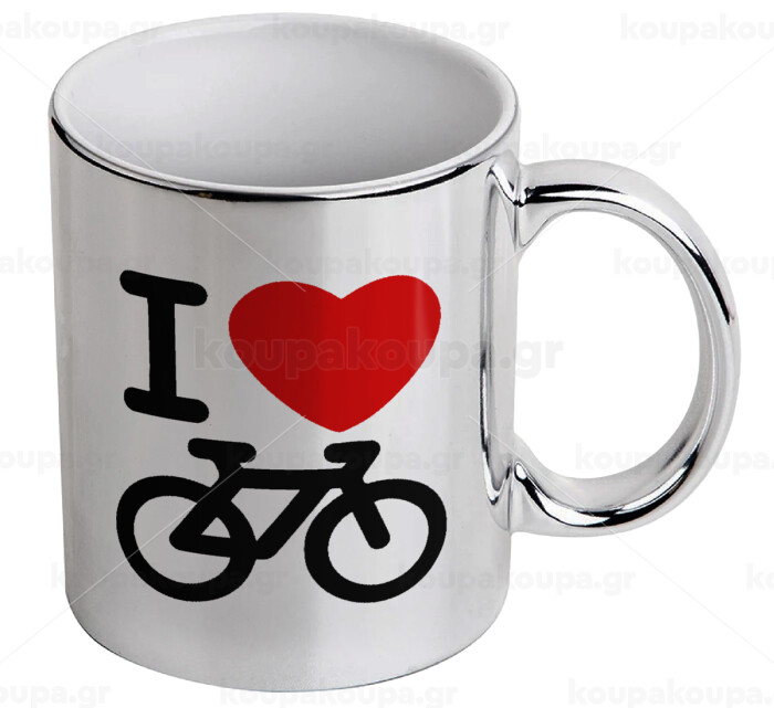 I love Bike, Κούπα κεραμική, ασημένια καθρέπτης, 330ml
