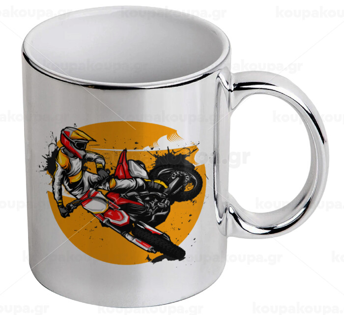 Motocross, Κούπα κεραμική, ασημένια καθρέπτης, 330ml