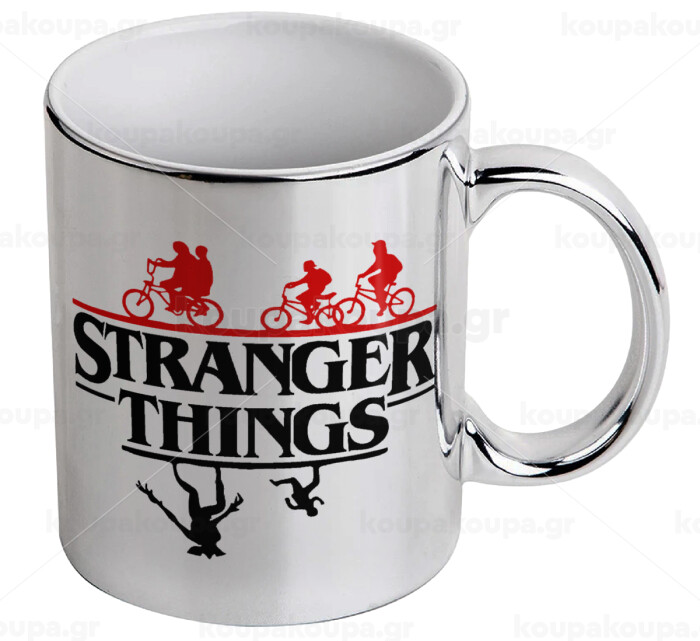Stranger Things upside down, Κούπα κεραμική, ασημένια καθρέπτης, 330ml
