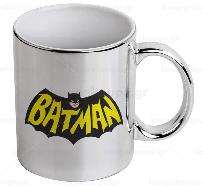 Batman classic logo, Κούπα κεραμική, ασημένια καθρέπτης, 330ml