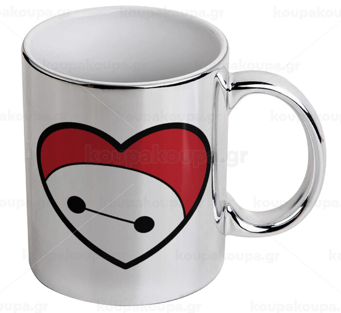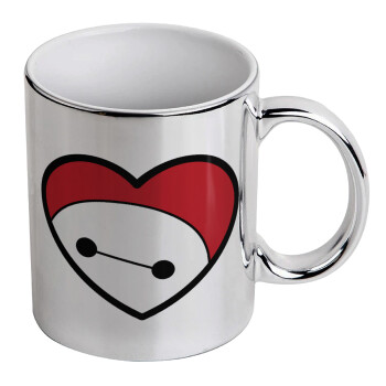 Baymax heart, Κούπα κεραμική, ασημένια καθρέπτης, 330ml
