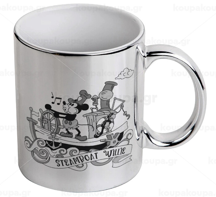 Mickey steamboat, Κούπα κεραμική, ασημένια καθρέπτης, 330ml