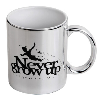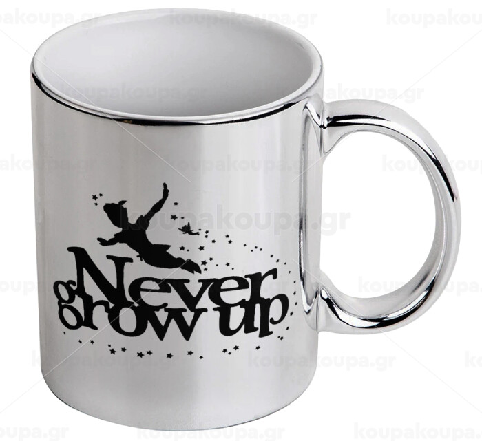 Peter pan, Never Grow UP, Κούπα κεραμική, ασημένια καθρέπτης, 330ml