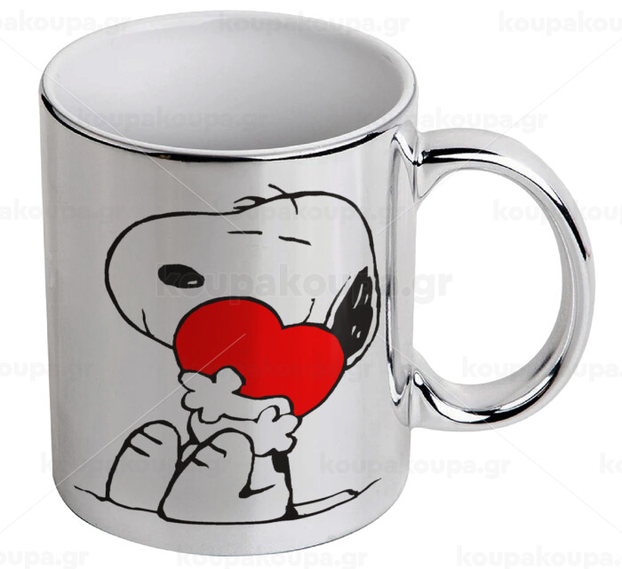 Snoopy, Κούπα κεραμική, ασημένια καθρέπτης, 330ml