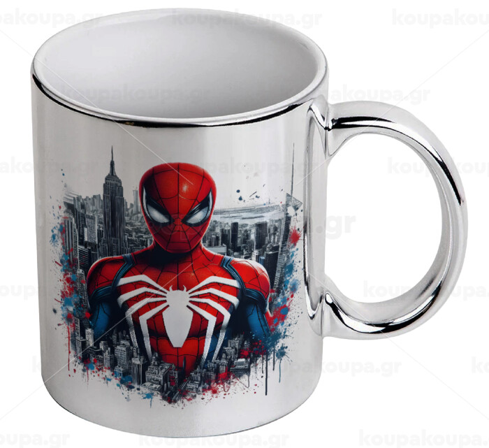 Spiderman City, Κούπα κεραμική, ασημένια καθρέπτης, 330ml