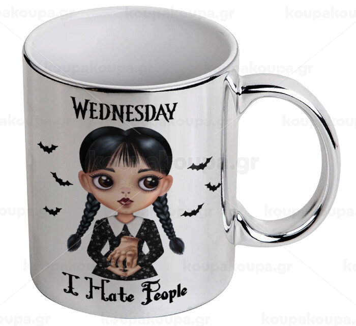 Wednesday Adams, i hate people, Κούπα κεραμική, ασημένια καθρέπτης, 330ml