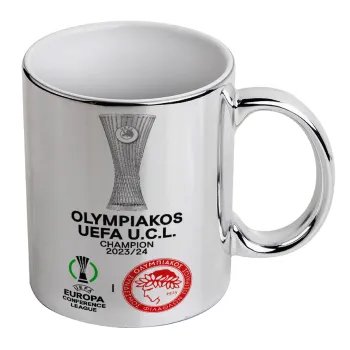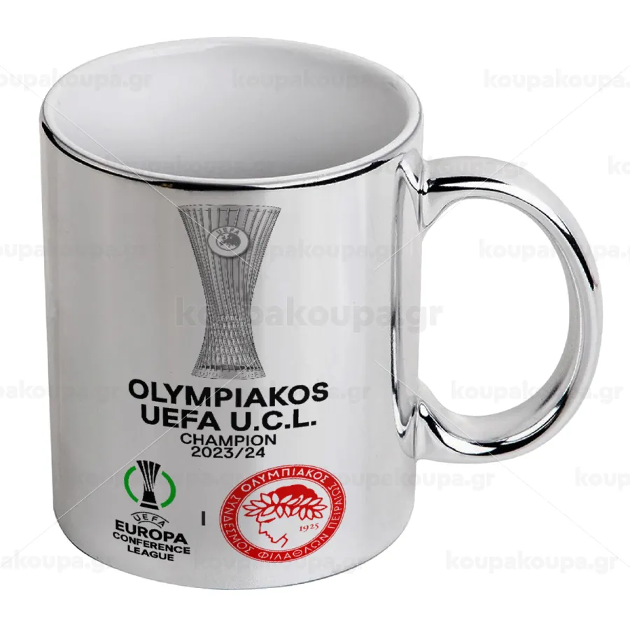 Ολυμπιακός νικητής UEFA Europa Conference League Champion 2023/24, Κούπα κεραμική, ασημένια καθρέπτης, 330ml