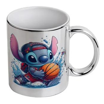 Stitch Basketball, Κούπα κεραμική, ασημένια καθρέπτης, 330ml