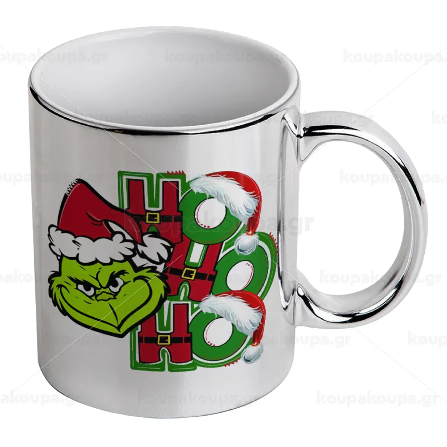 Grinch ho ho ho, Κούπα κεραμική, ασημένια καθρέπτης, 330ml