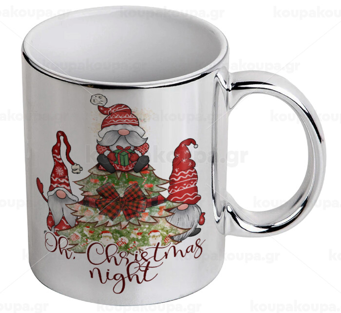 Oh Christmas Night, Κούπα κεραμική, ασημένια καθρέπτης, 330ml