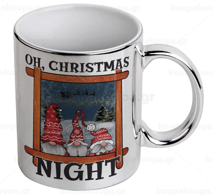 Oh Christmas Night, Κούπα κεραμική, ασημένια καθρέπτης, 330ml