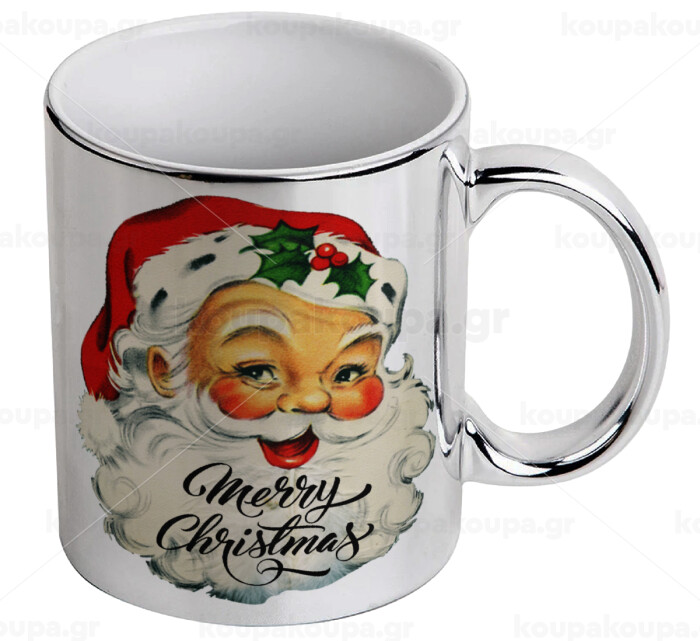 Santa vintage, Κούπα κεραμική, ασημένια καθρέπτης, 330ml