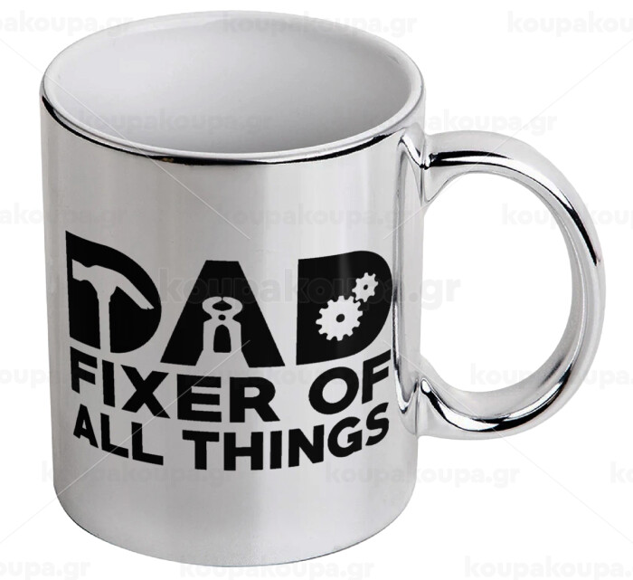 DAD, fixer of all thinks, Κούπα κεραμική, ασημένια καθρέπτης, 330ml