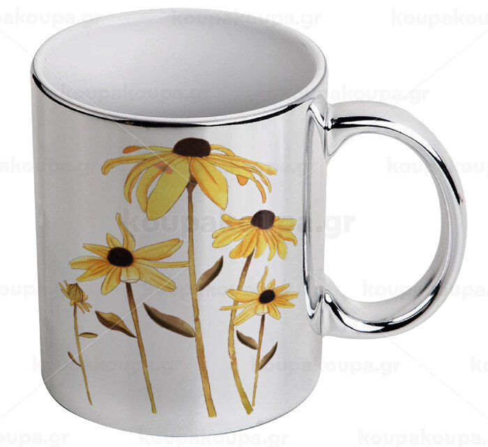 Daisies flower, Κούπα κεραμική, ασημένια καθρέπτης, 330ml