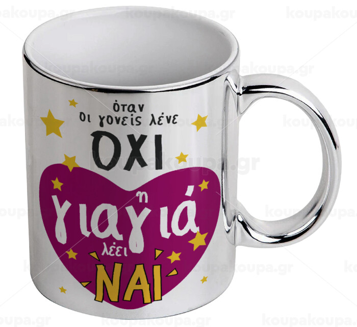 Όταν οι γονείς λένε ΟΧΙ, η γιαγιά λέει ΝΑΙ, Κούπα κεραμική, ασημένια καθρέπτης, 330ml