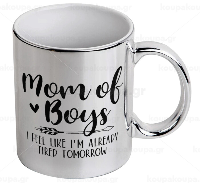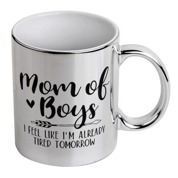 Mom of boys i feel like im already tired tomorrow, Κούπα κεραμική, ασημένια καθρέπτης, 330ml