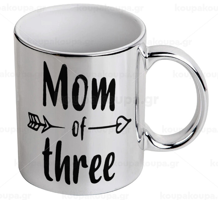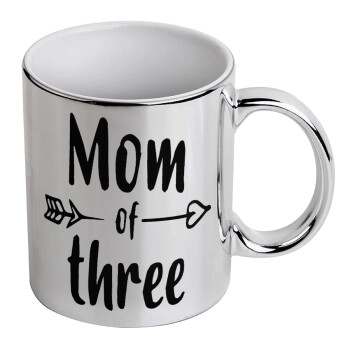 Mom of three, Κούπα κεραμική, ασημένια καθρέπτης, 330ml