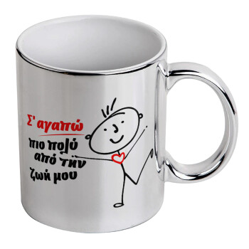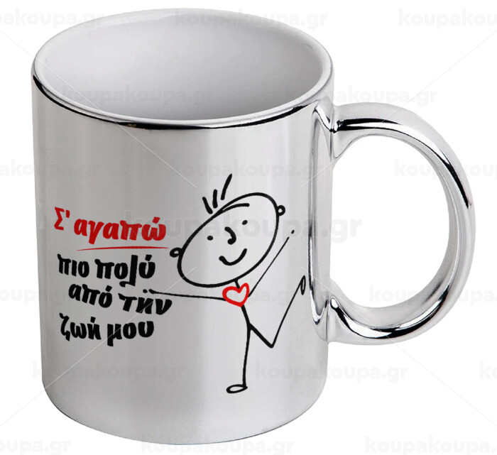 Σ'αγαπώ πιο πολύ από την ζωή μου!!!, Κούπα κεραμική, ασημένια καθρέπτης, 330ml