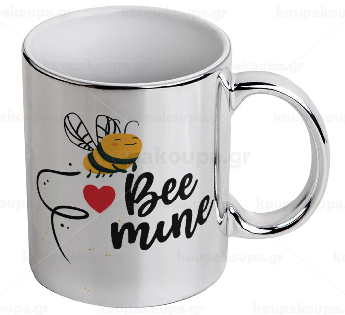 Bee mine!!!, Κούπα κεραμική, ασημένια καθρέπτης, 330ml