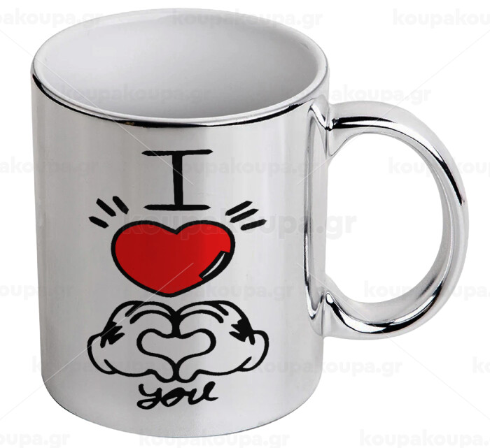 comics hands love, Κούπα κεραμική, ασημένια καθρέπτης, 330ml