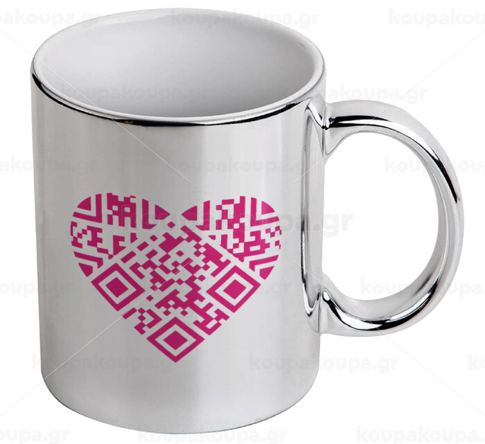 Heart hidden MSG, try me!!!, Κούπα κεραμική, ασημένια καθρέπτης, 330ml